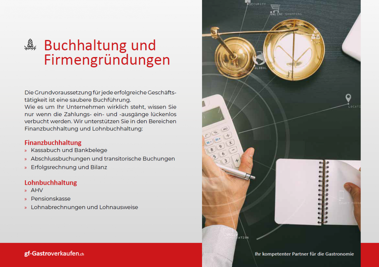 Wir unterstützen Gastronomiebetriebe umfassend bei allen buchhalterischen Aufgaben. Unsere Dienstleistungen richten sich an Betriebe jeder Grösse – vom kleinen Takeaway bis zum grossen Restaurantkonzept.